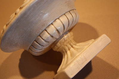 Next, I used some watered down acrylic paint to age the pot. I love how aging looks in the detail...I used the paint-on/wipe-off method...I really have no good dish towels left! :)