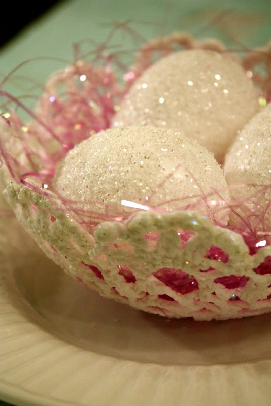 ReplyDeleteOk, you knew that you had me drooling at the chocolate bunny under the cloche, gorgeous and more gorgeous. Then the cabbage and the stiffened doilies, glitter eggs and all the fun colors of the grass. This is so pretty. I love how creative you are. Everything is just beautiful. Hugs, Marty