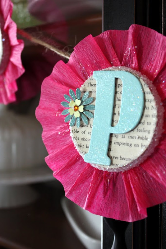 and notice that I used different letter style a couple of times, I like how using a different style letter gives the garland a "ransom" look, but in reality, I didn't have all the letters I needed, in one style...in the words of my husband: Improvise, Adapt, and Overcome!