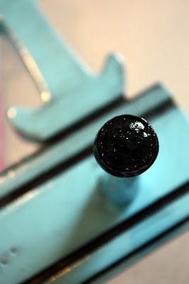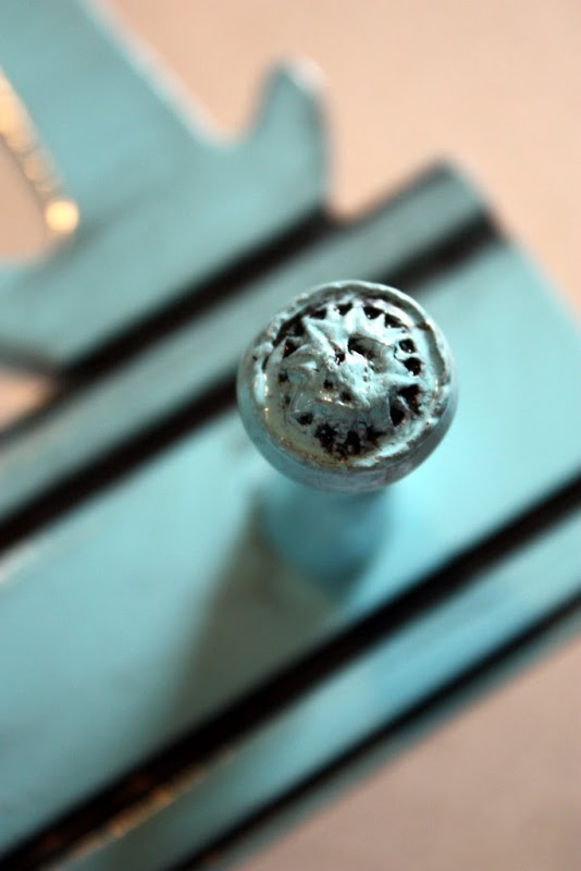 I gave it two coats of Krylon's Blue Ocean Breeze in gloss. Can I just say how much I love the spray paint from Krylon...from the smooth flawless finish to the ease of use spray trigger...it's a really great product.