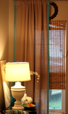 I found some great linen-like 96'' panels at Big Lots for 7.oo, holy moly cheap! Gauzy like fabric, lending a easy breezy feel to the living room, but I wanted to add some detail.