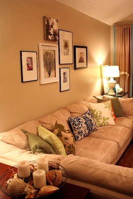The sofa: the pillows never actaully stay like this, but being the only girl in the house...I gotta have my pillows!